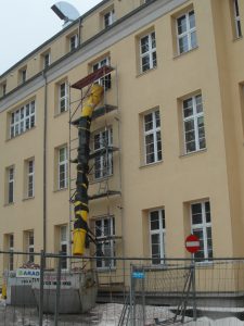 Na zewnątrz budynku rozpoczęła się budowa windy, która obsługiwać będzie wszystkie kondygnacje szpitala.